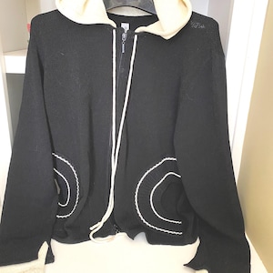 Divita Black Bugle Bead Sweater, Animal Motif, Size L