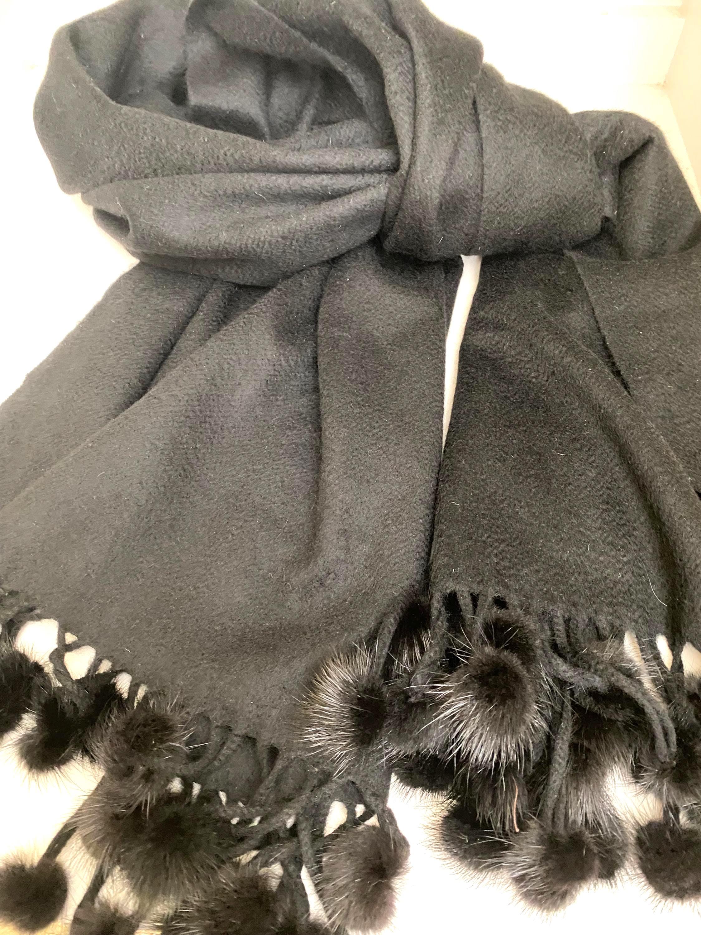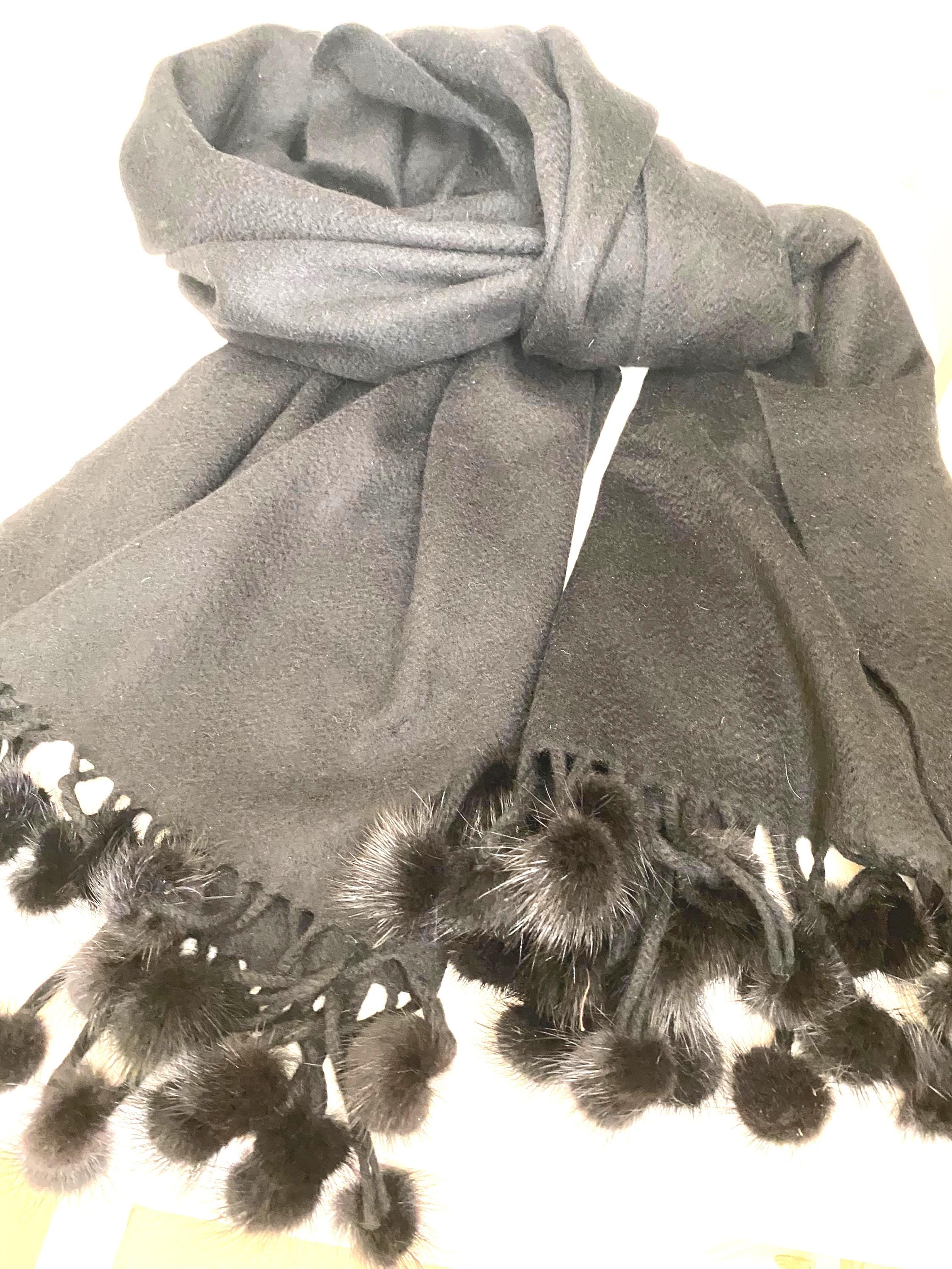 Oversized 100 percent Montegonian cashmere wrap with fox fur trim. 26 inches wide, 78 inches long. Black only. Perfect condition.