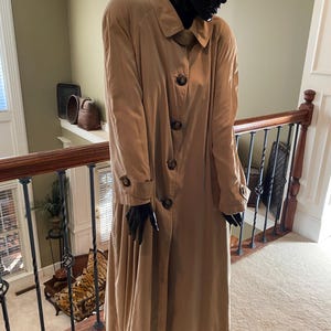 Olive green iridescent, belted, single-breasted designer coat. Size 10 Tabbed detail on the sleeves. Detail on the color, with dramatic puffed - sensational coat for both evening and daytime - just gorgeous.