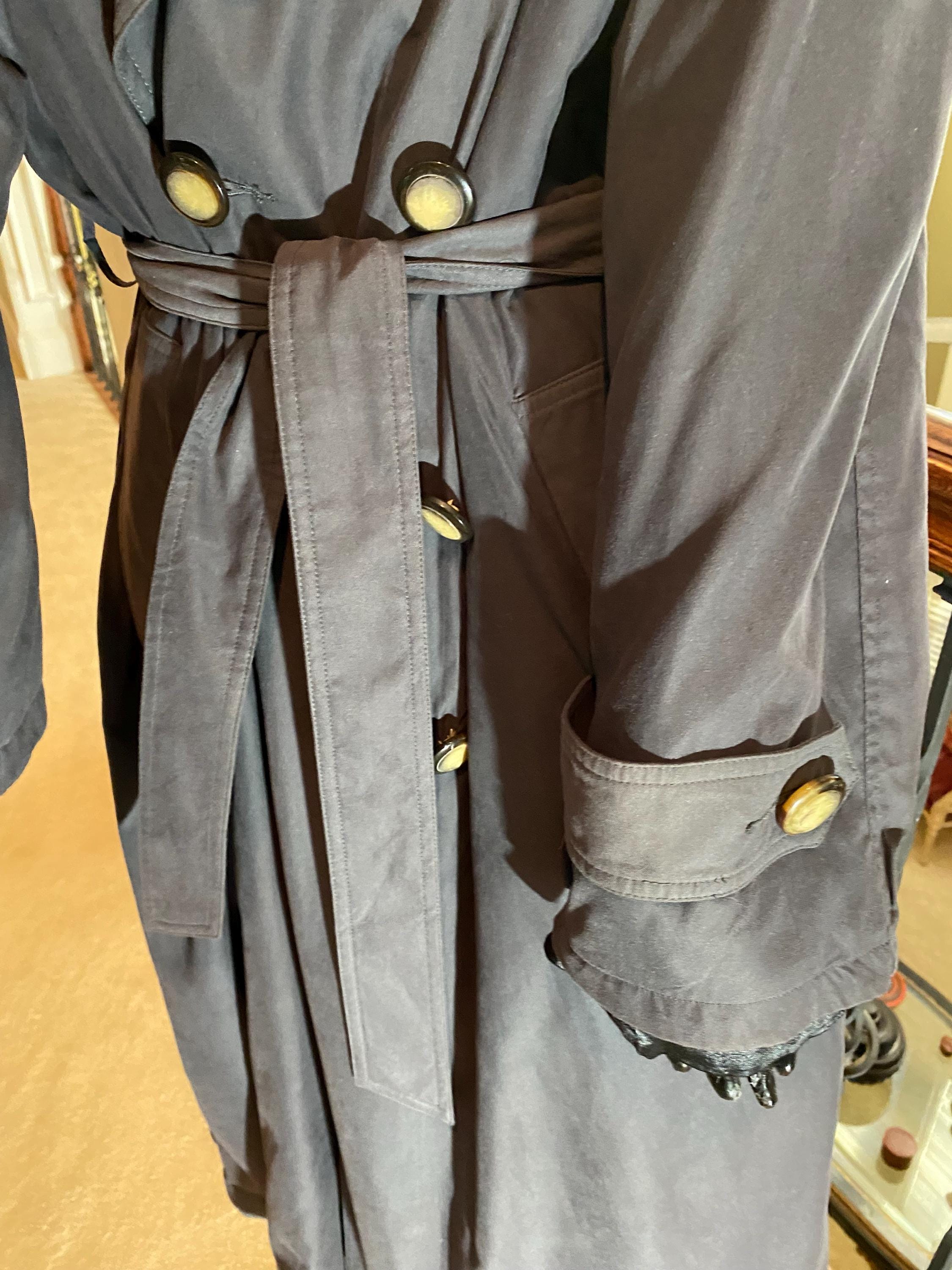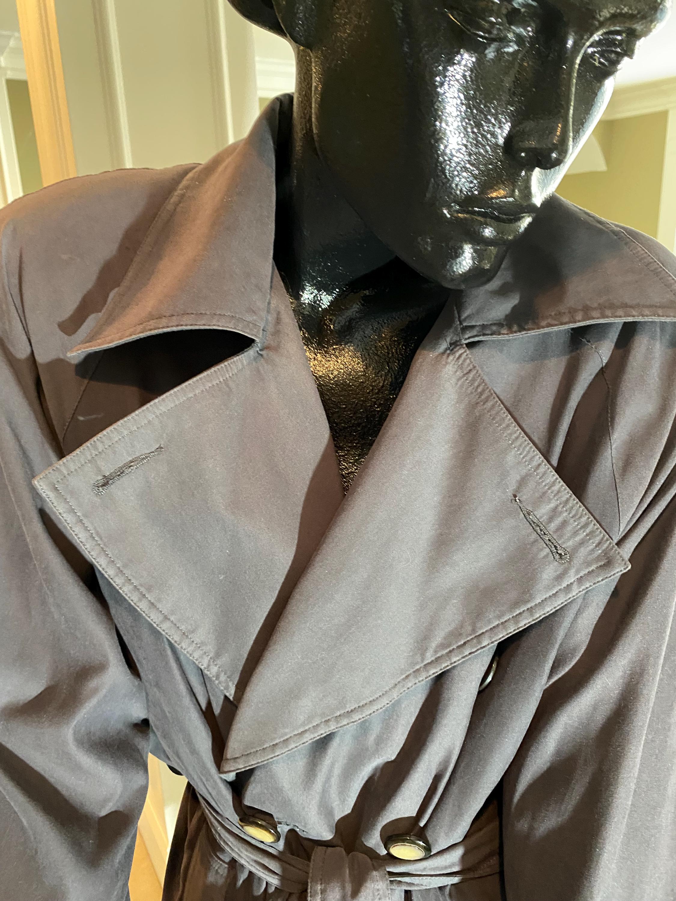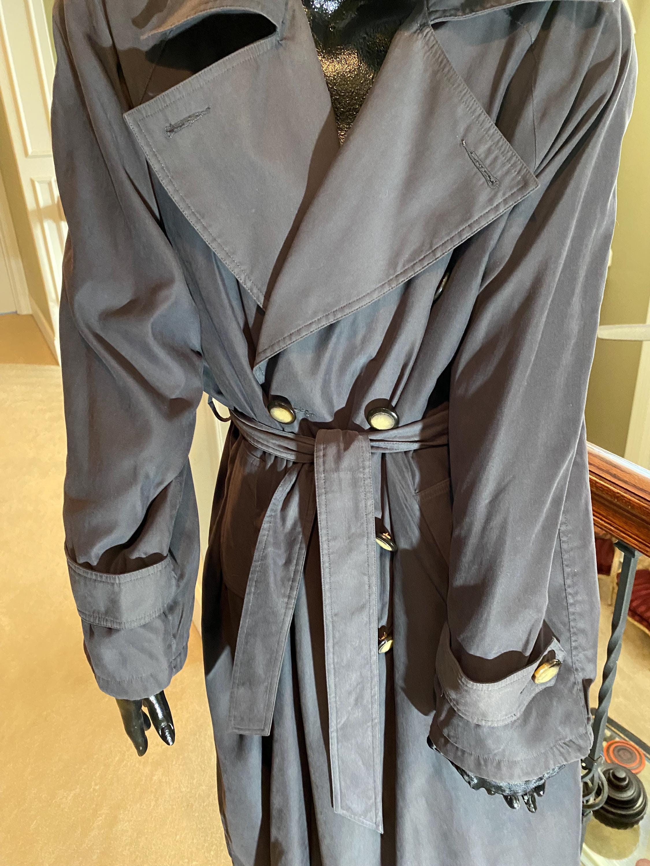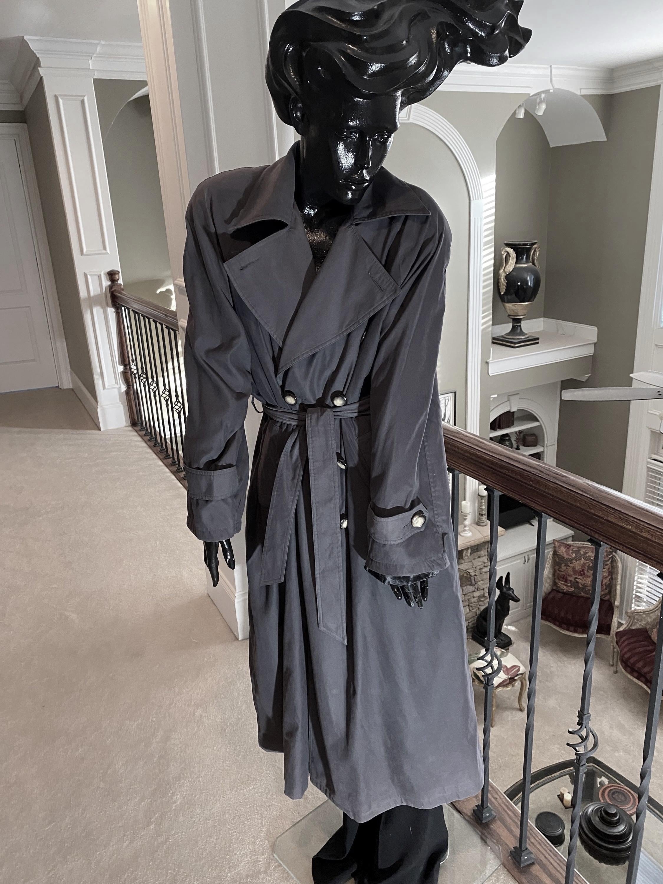 Votre Nom double breasted, tie self-belted trench coat in charcoal grey with button-out lining. Acrylic Poly wool blend. Dry clean only. Medium Size 2. Pristine, perfect condition - never worn