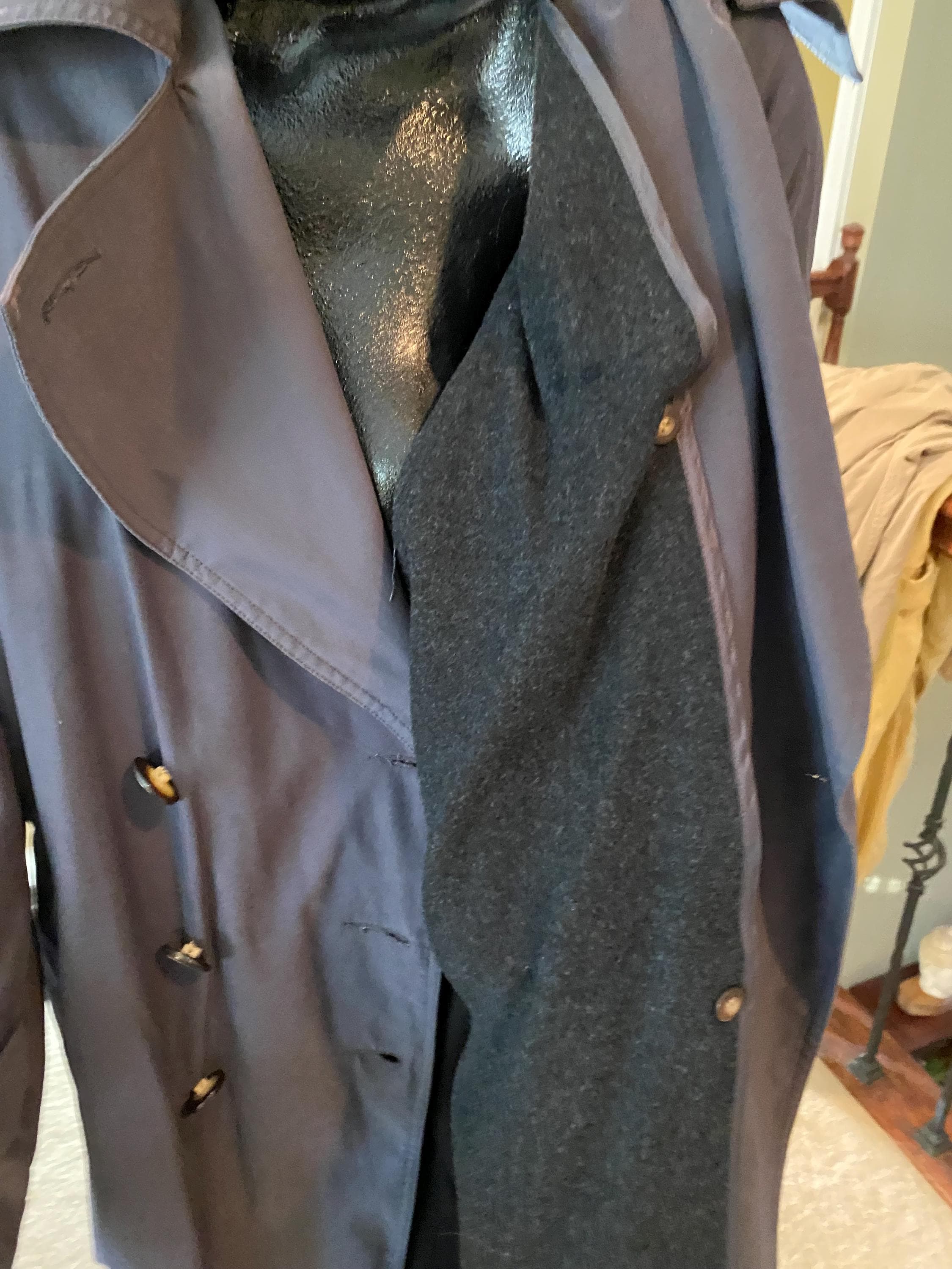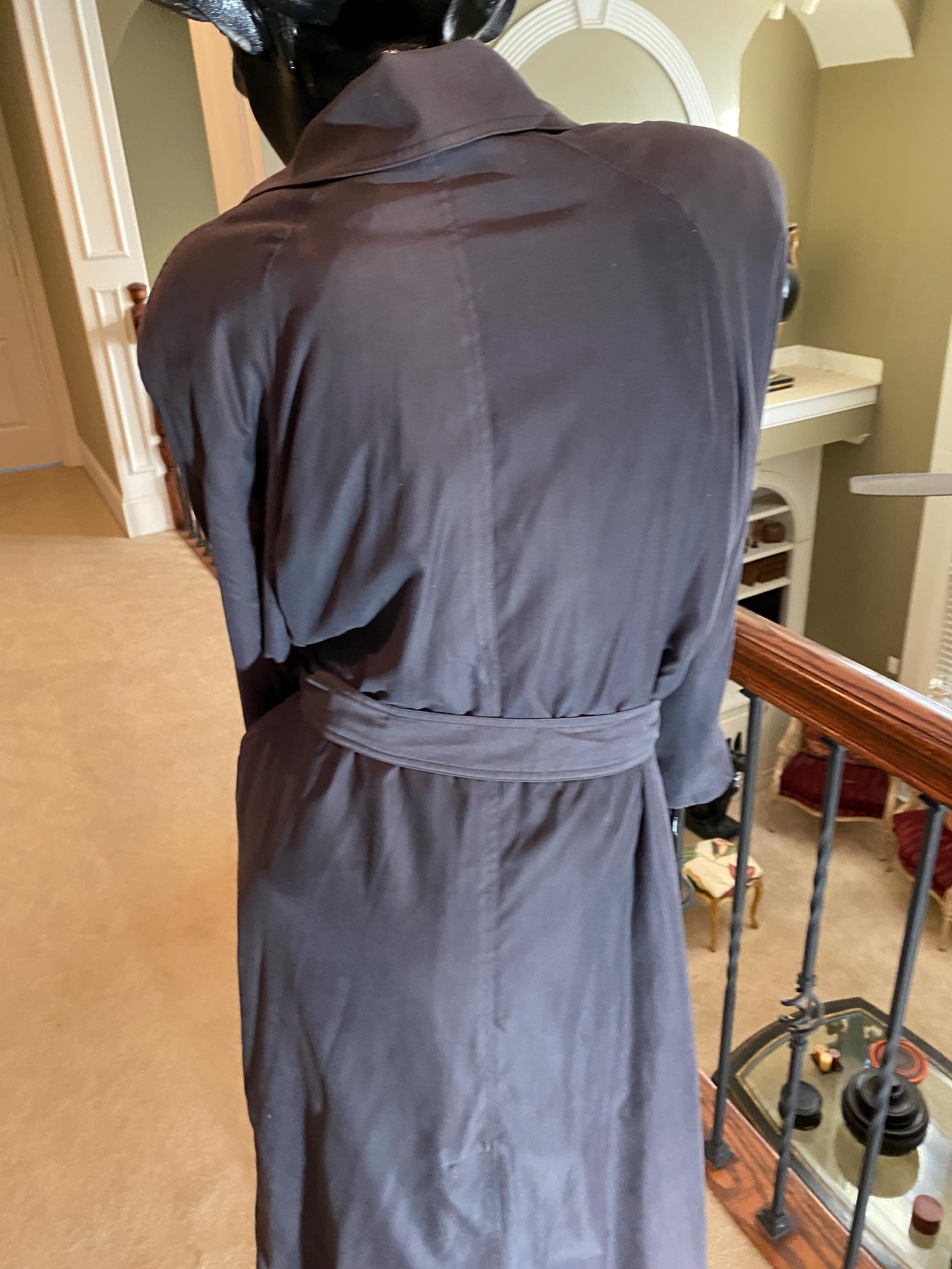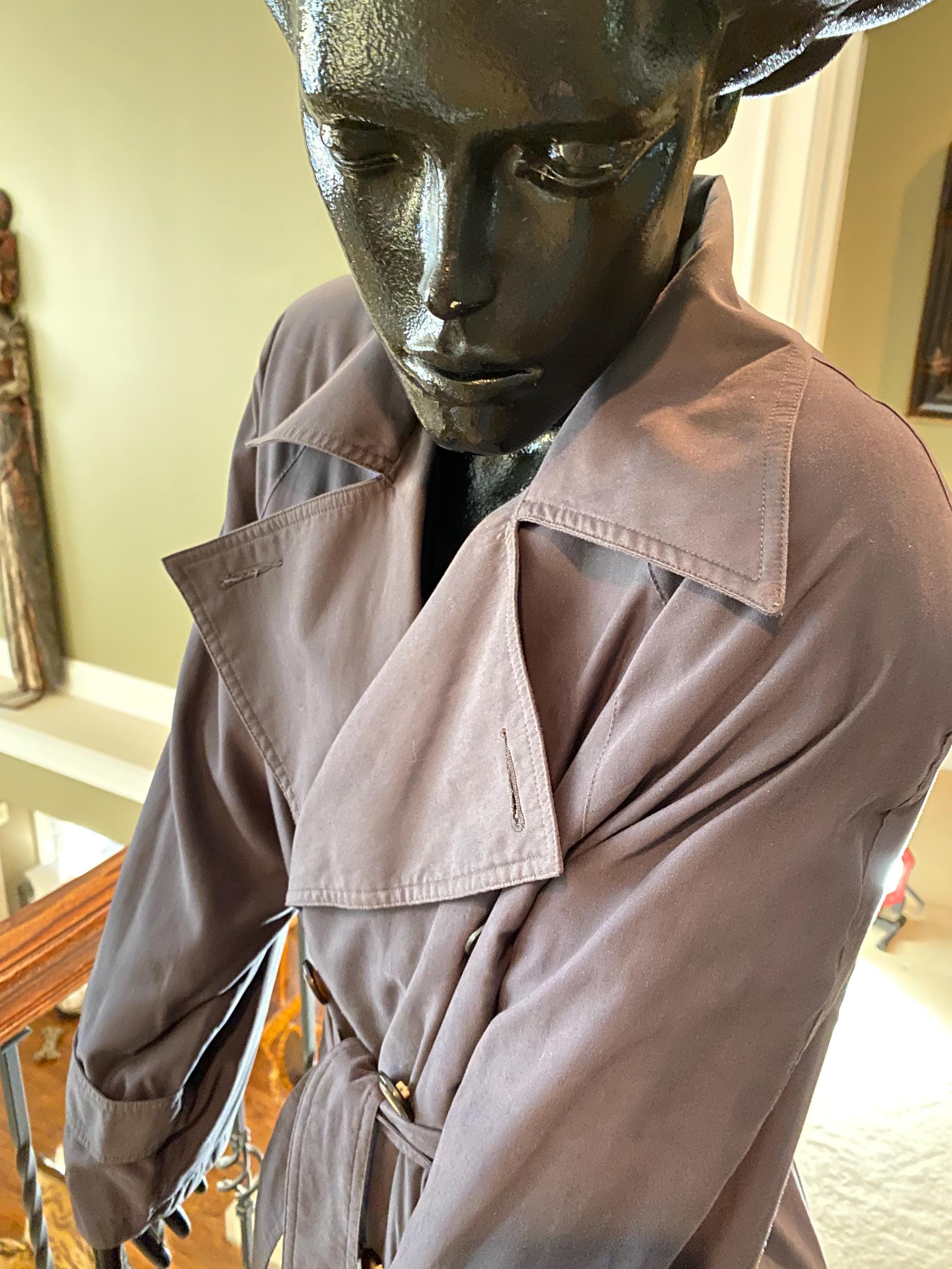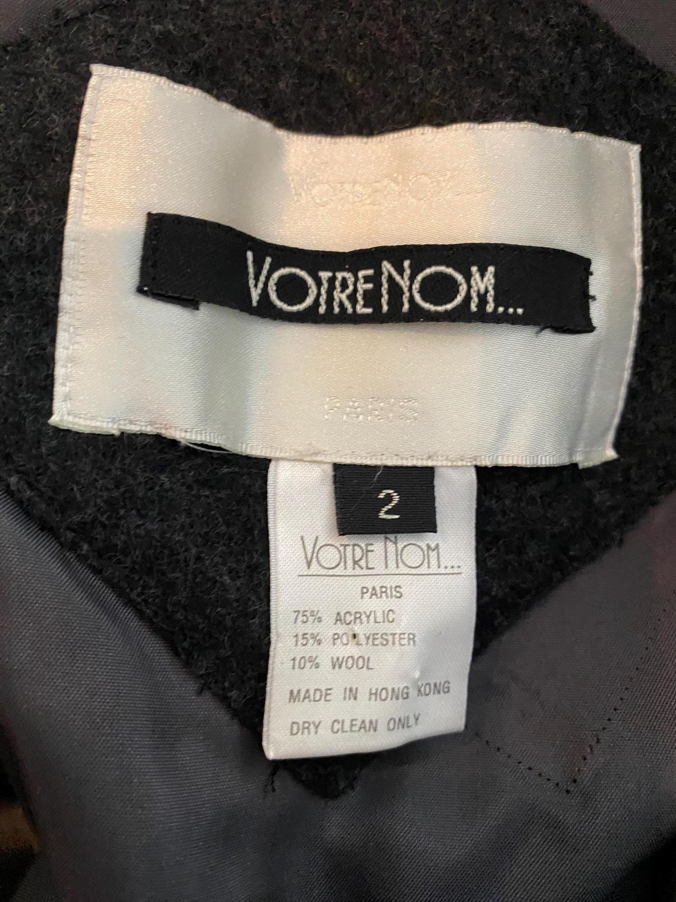 Votre Nom double breasted, tie self-belted trench coat in charcoal grey with button-out lining. Acrylic Poly wool blend. Dry clean only. Medium Size 2. Pristine, perfect condition - never worn