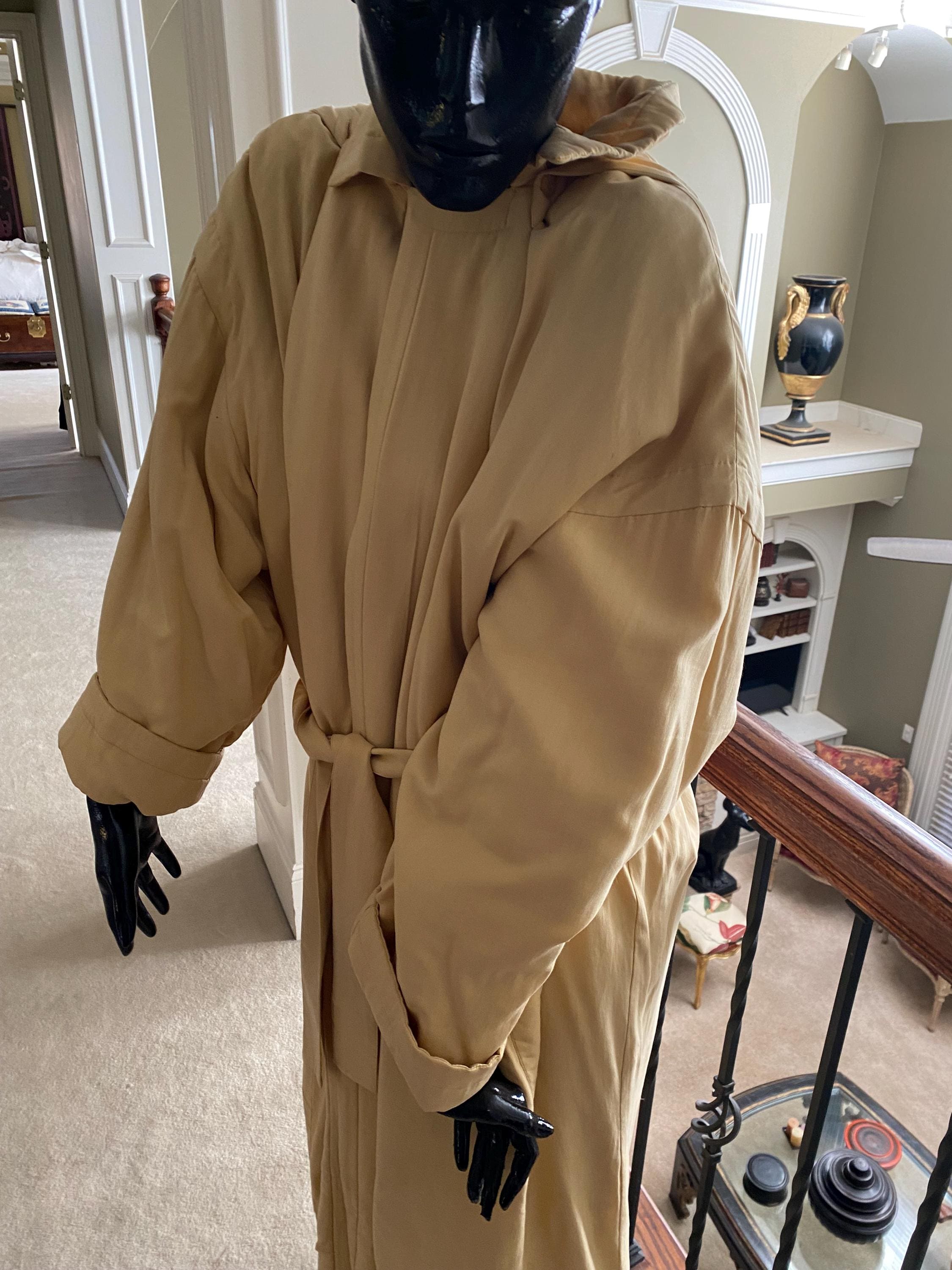 Designer Go Silk Long Coat with hood and button front