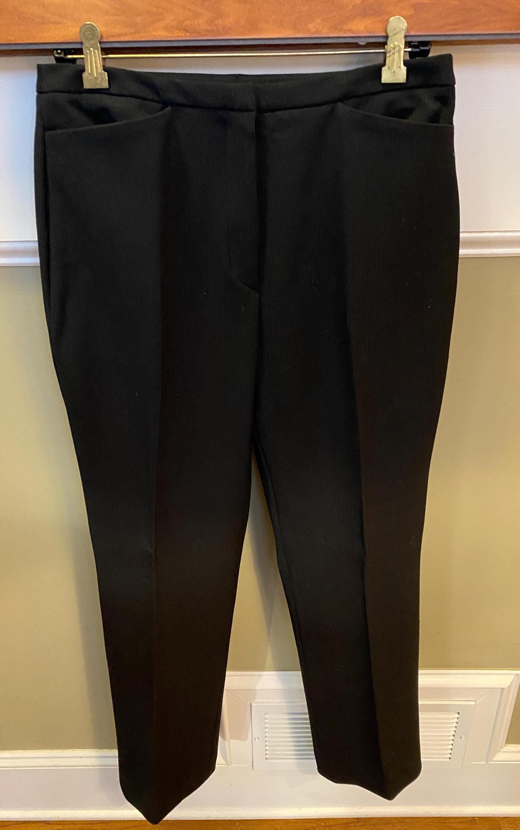 Bernard Zins women's Flat Front pant in Black size 10. Step into effortless sophistication with Bernard Zins Pants for Women. Designed in Paris and made with the finest fabrics, these trousers are more than clothing—they’re an investment in style. Whether you choose sleek wool dress pants for the boardroom, velvet chinos for weekend outings, or eco-friendly bio wool for sustainable luxury, Bernard Zins delivers comfort, elegance, and individuality. With customizable options and a heritage of craftsmanship, these pants aren’t just fashion—they’re a statement of refined taste.