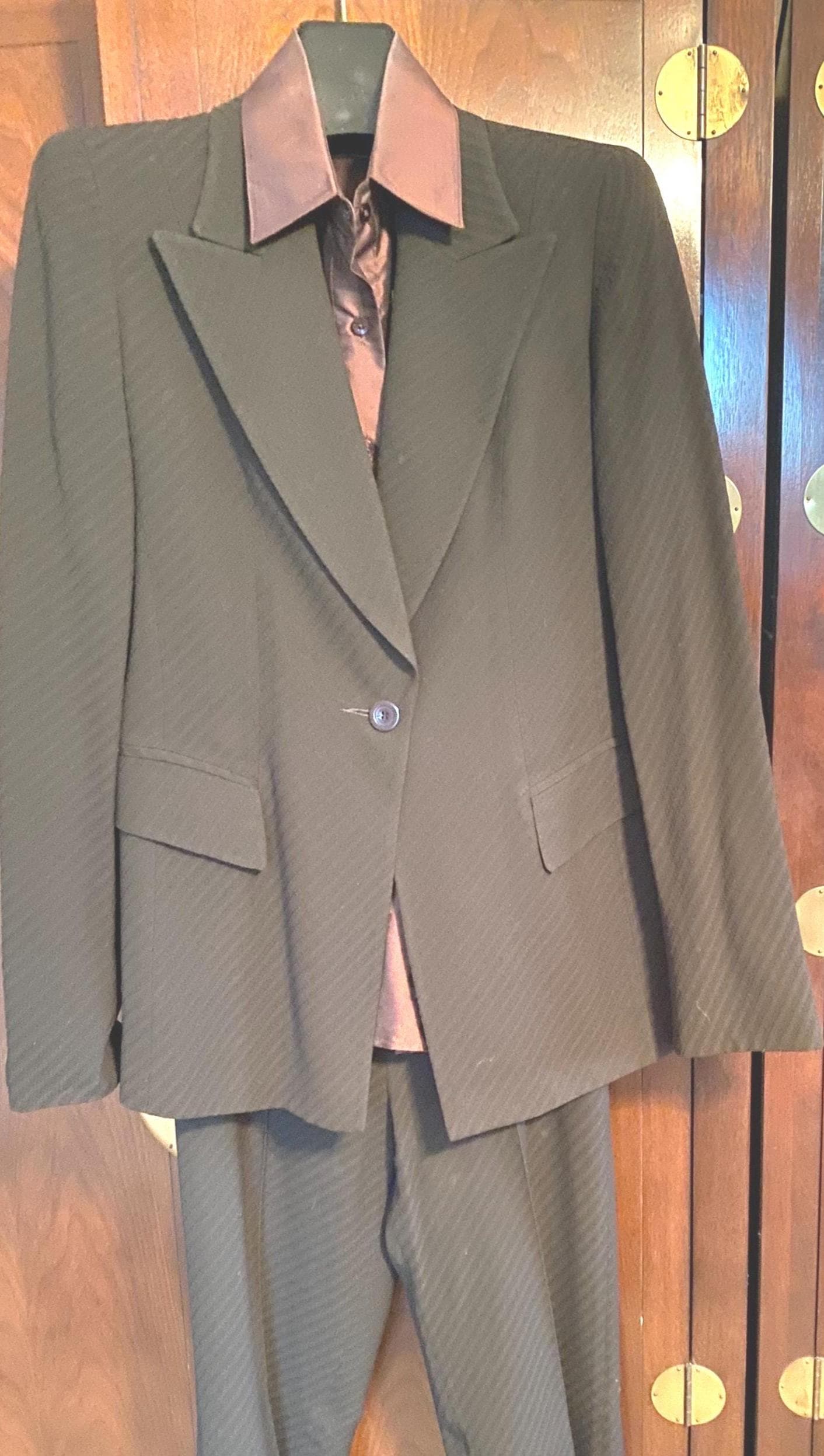 Marisa Minicucci pant suit in brown with diagonal stripe