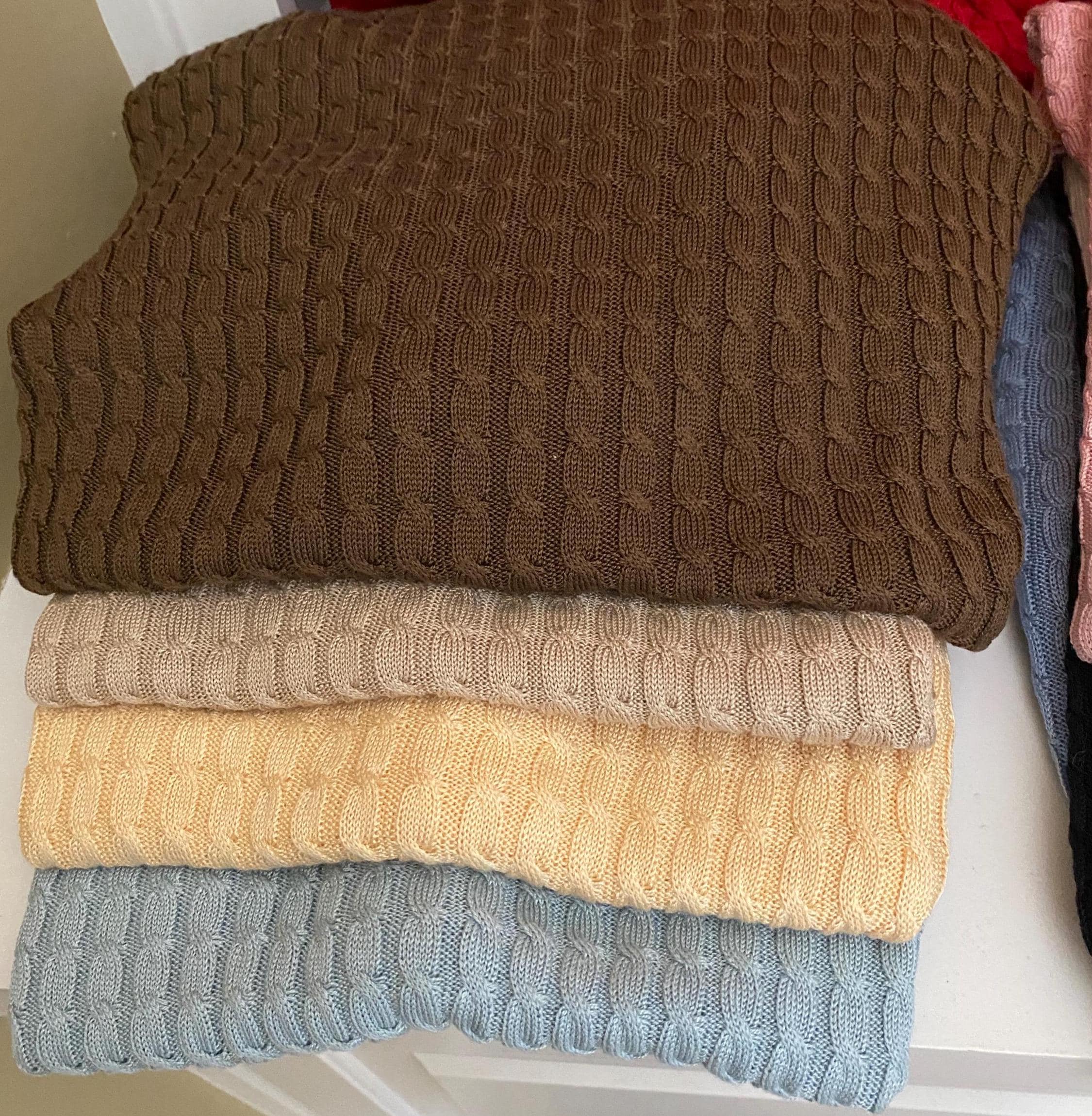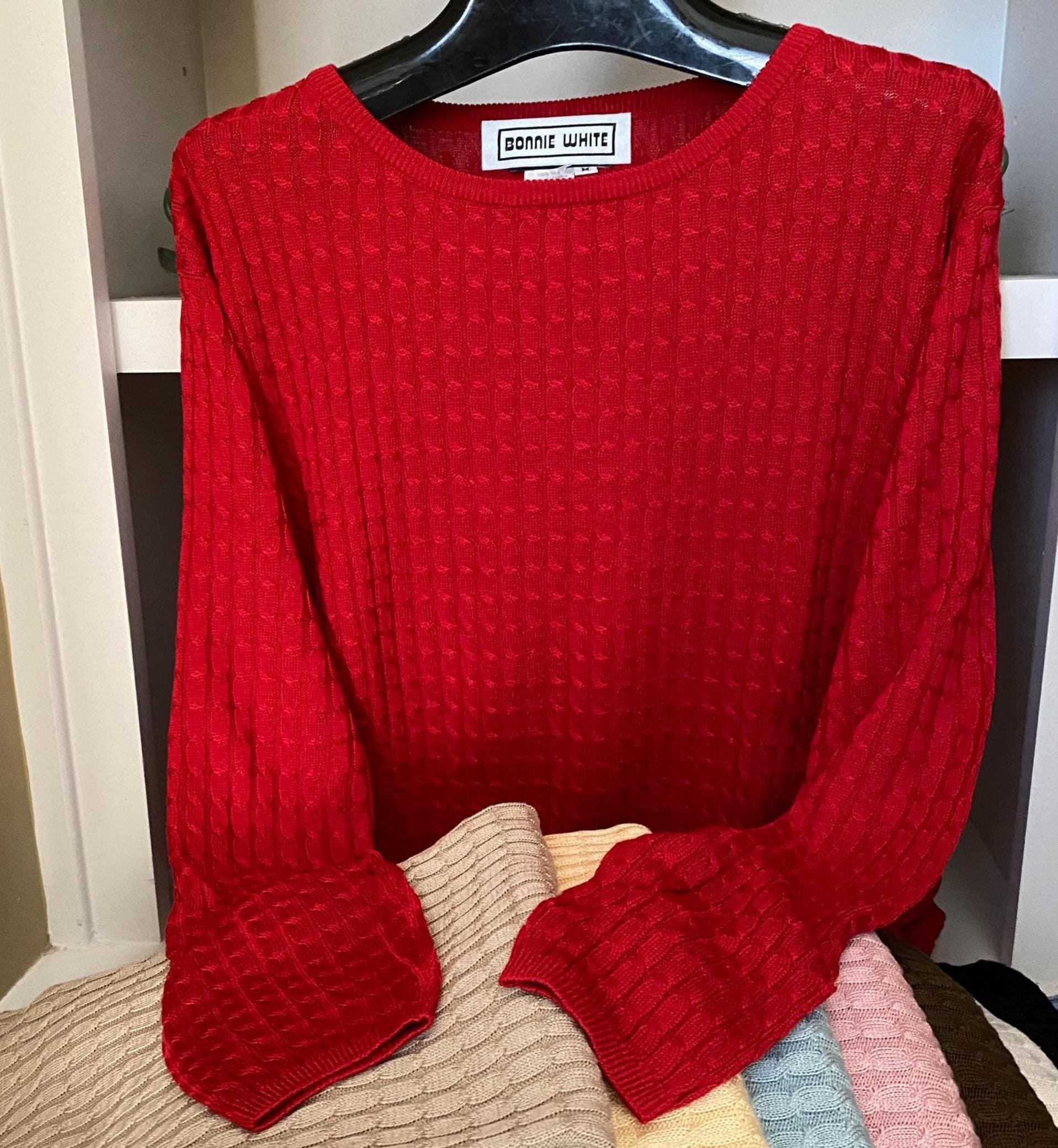 Kay Designer 100% Silk cable crew neck sweaters with long selves in 9 colors size M. Perfect condition - never worn.