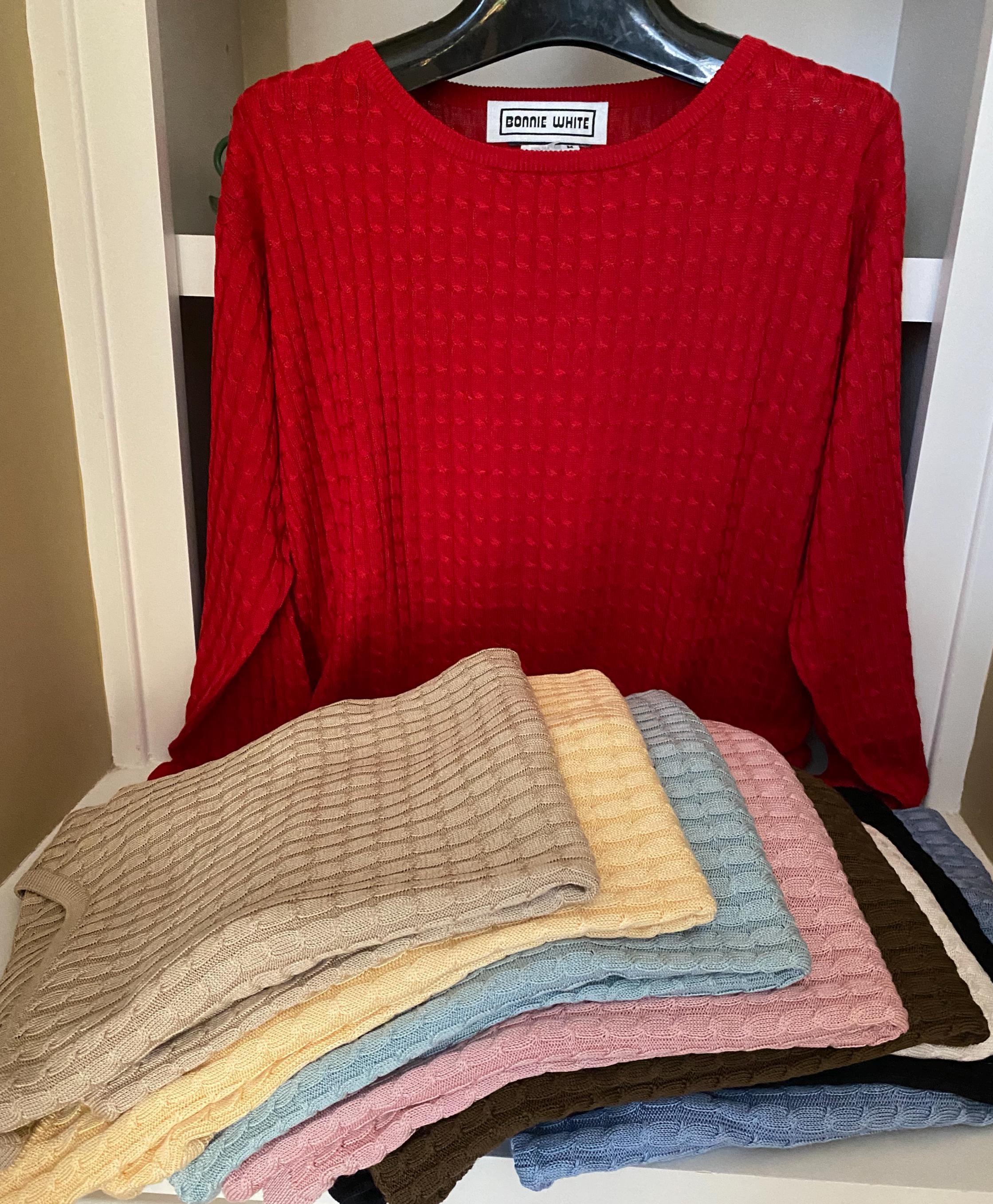 Kay Designer 100% Silk cable crew neck sweaters in 9 colors size M