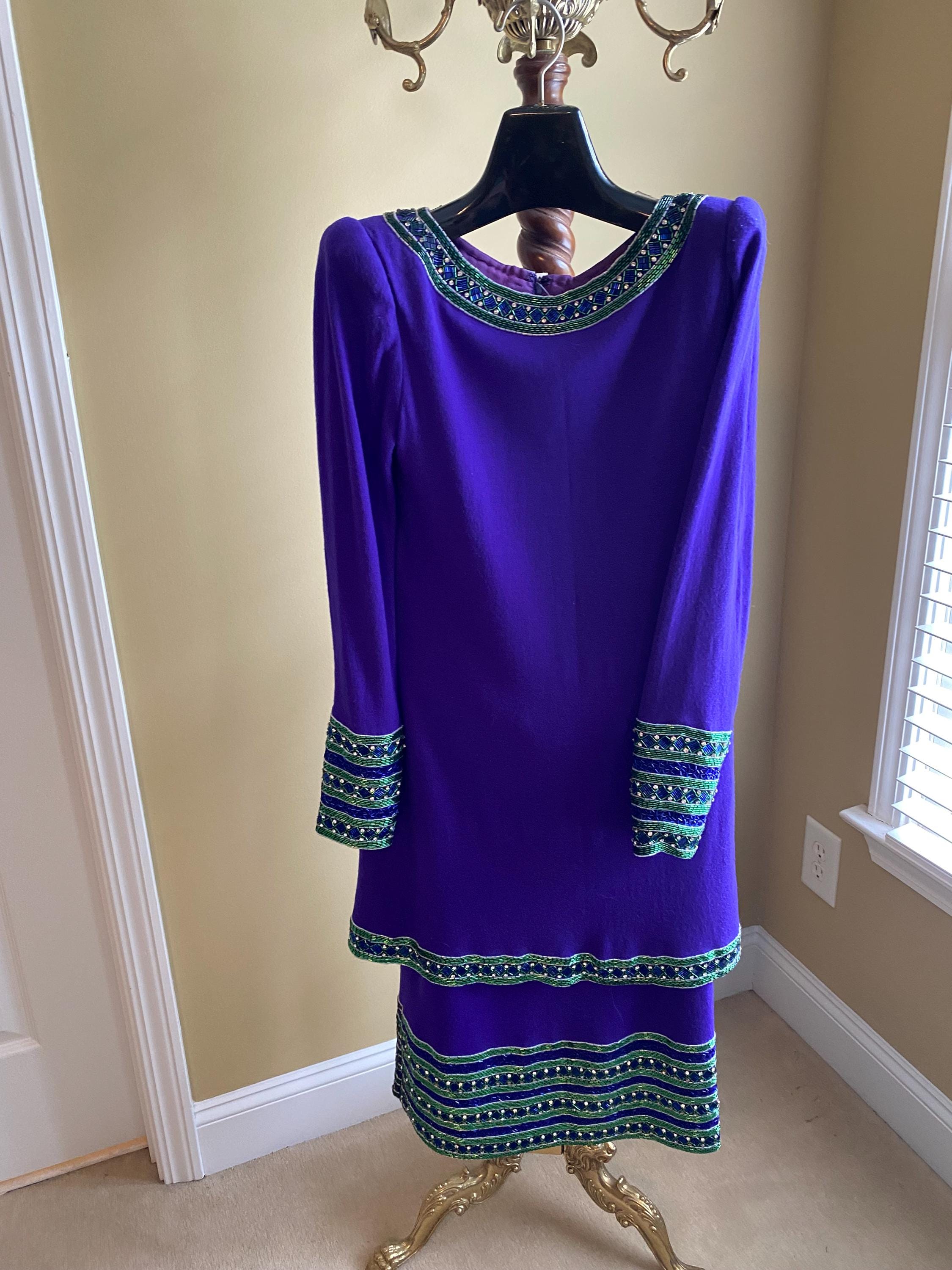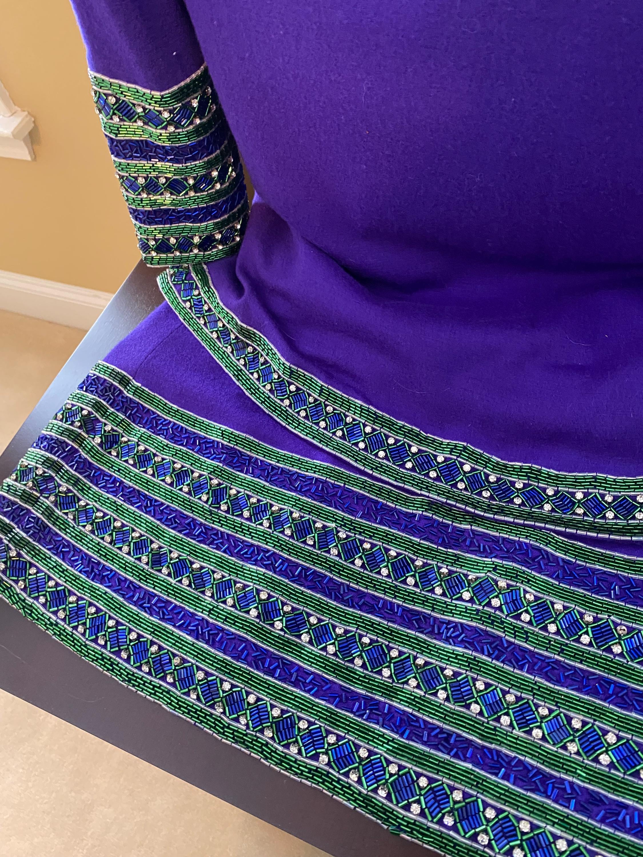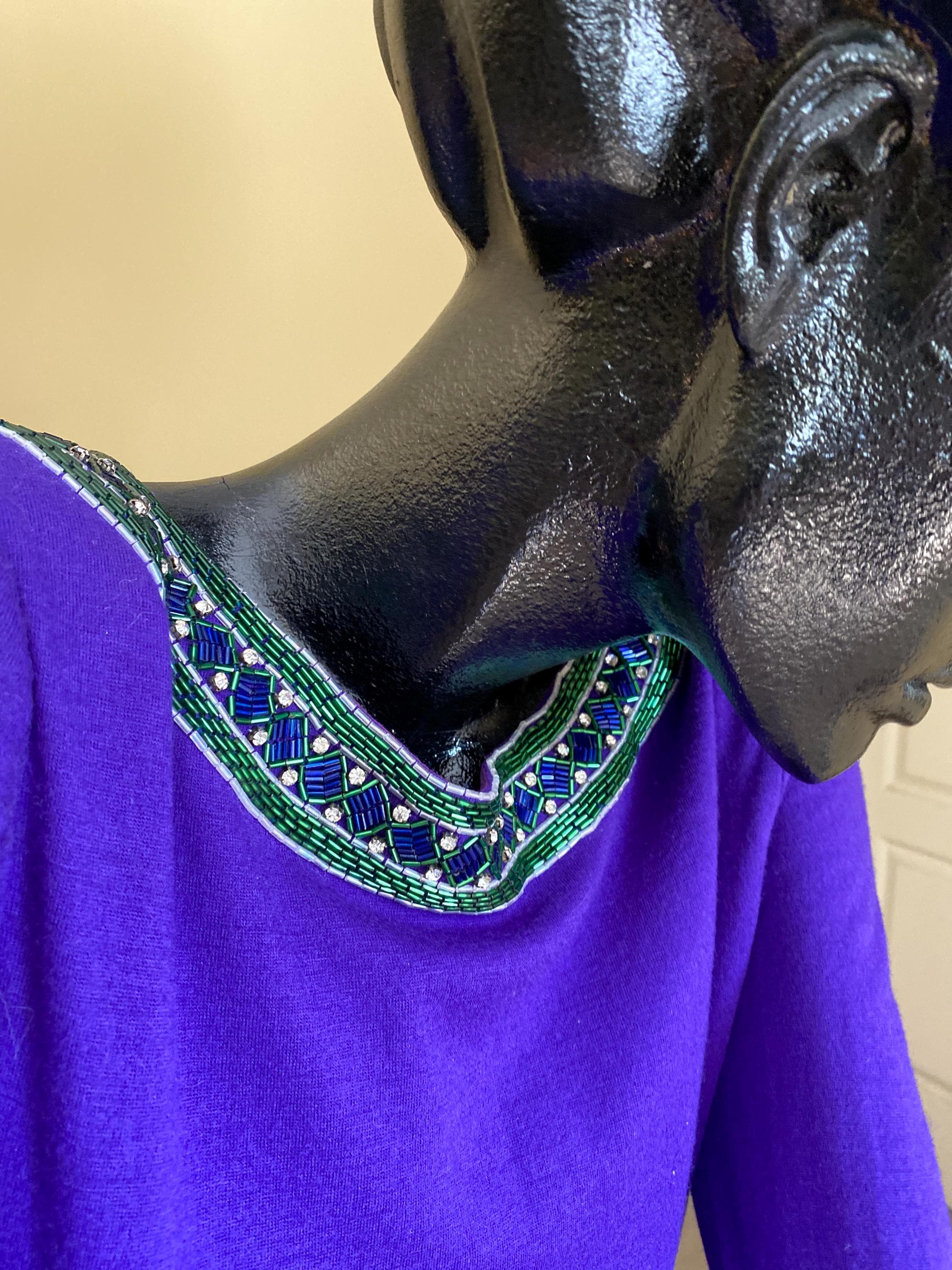 Randell designer 2-pcs Tunic & Skirt with beutiful Bugle Bead trimming, fine knit jersey size 10