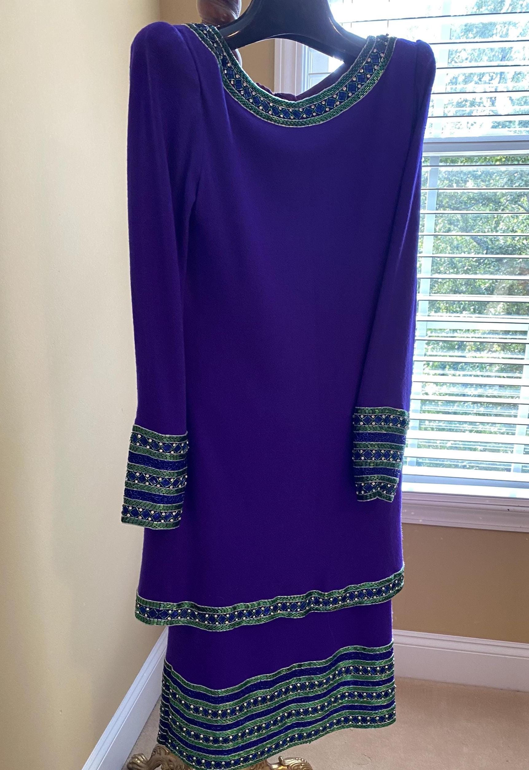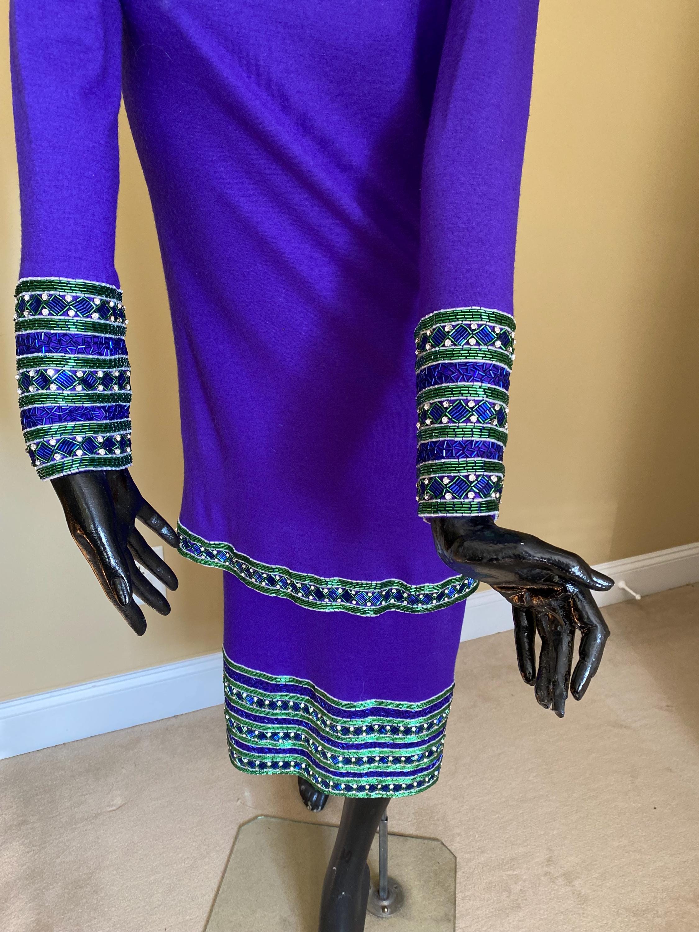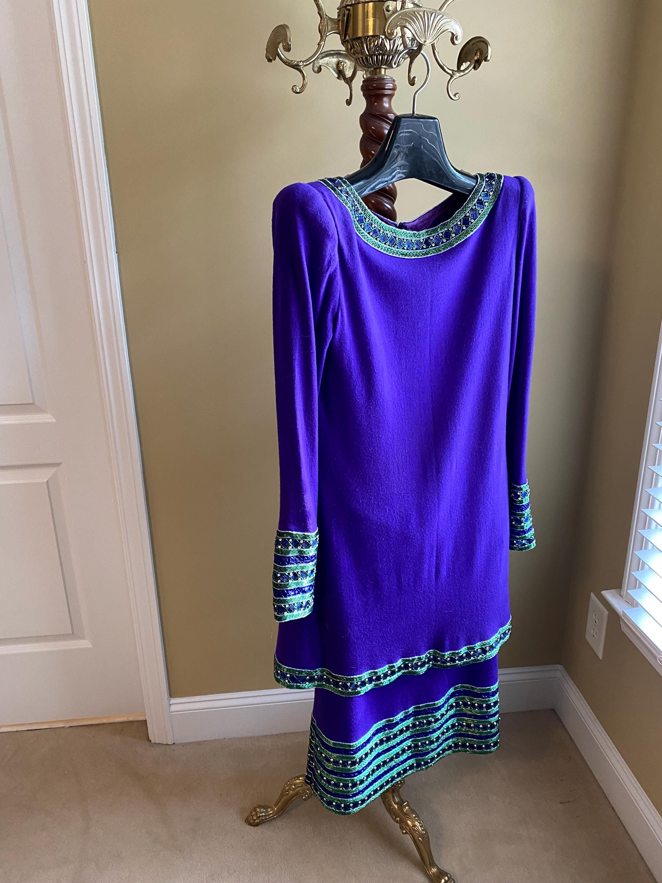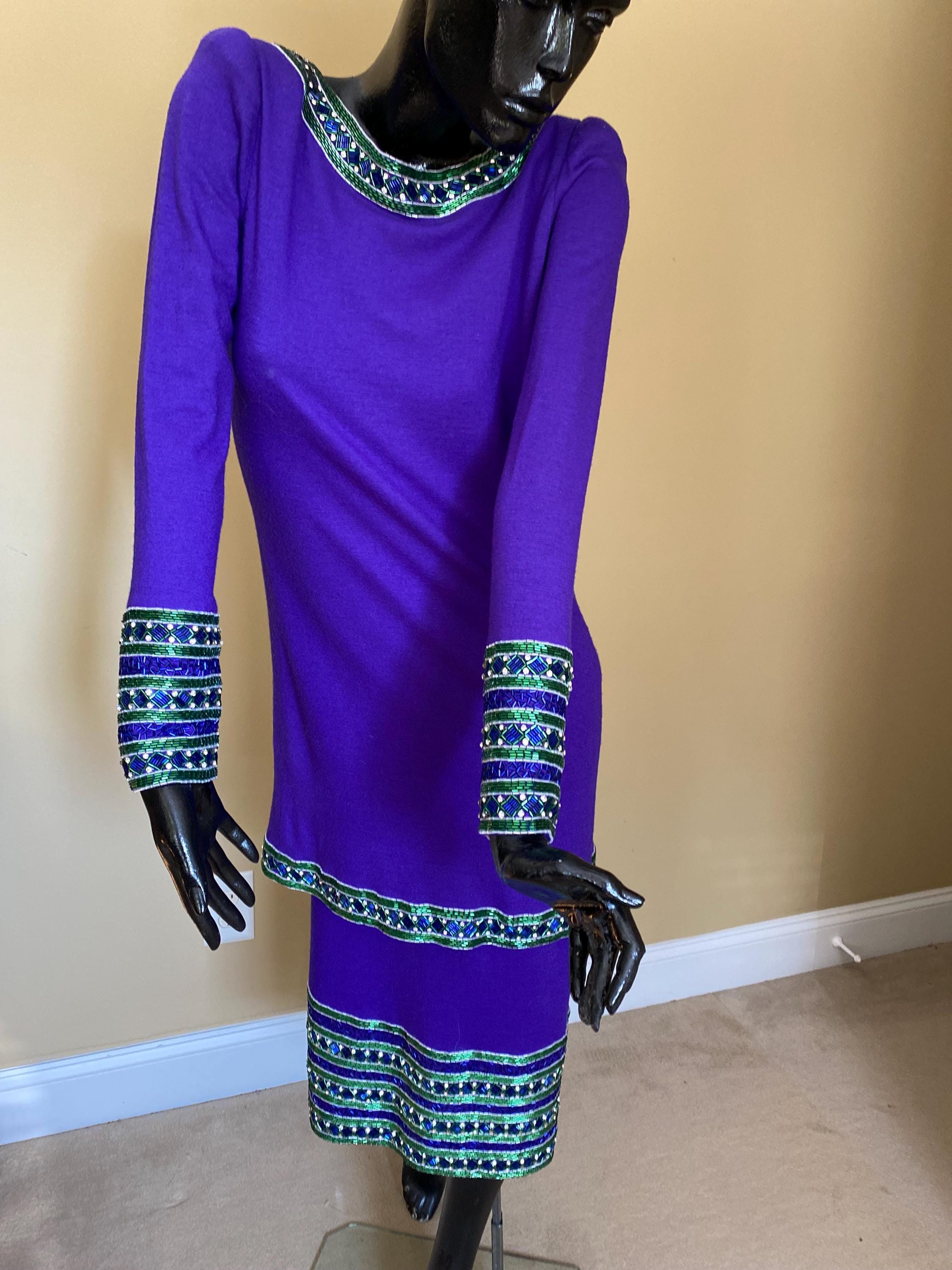 Randell designer 2-pcs Tunic & Skirt with beutiful Bugle Bead trimming, fine knit jersey size 10