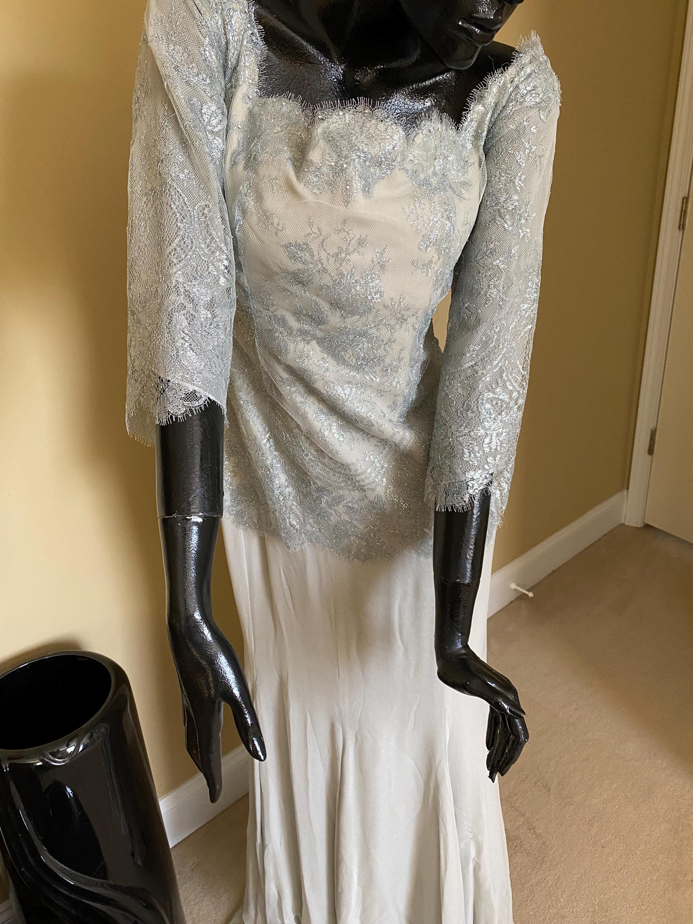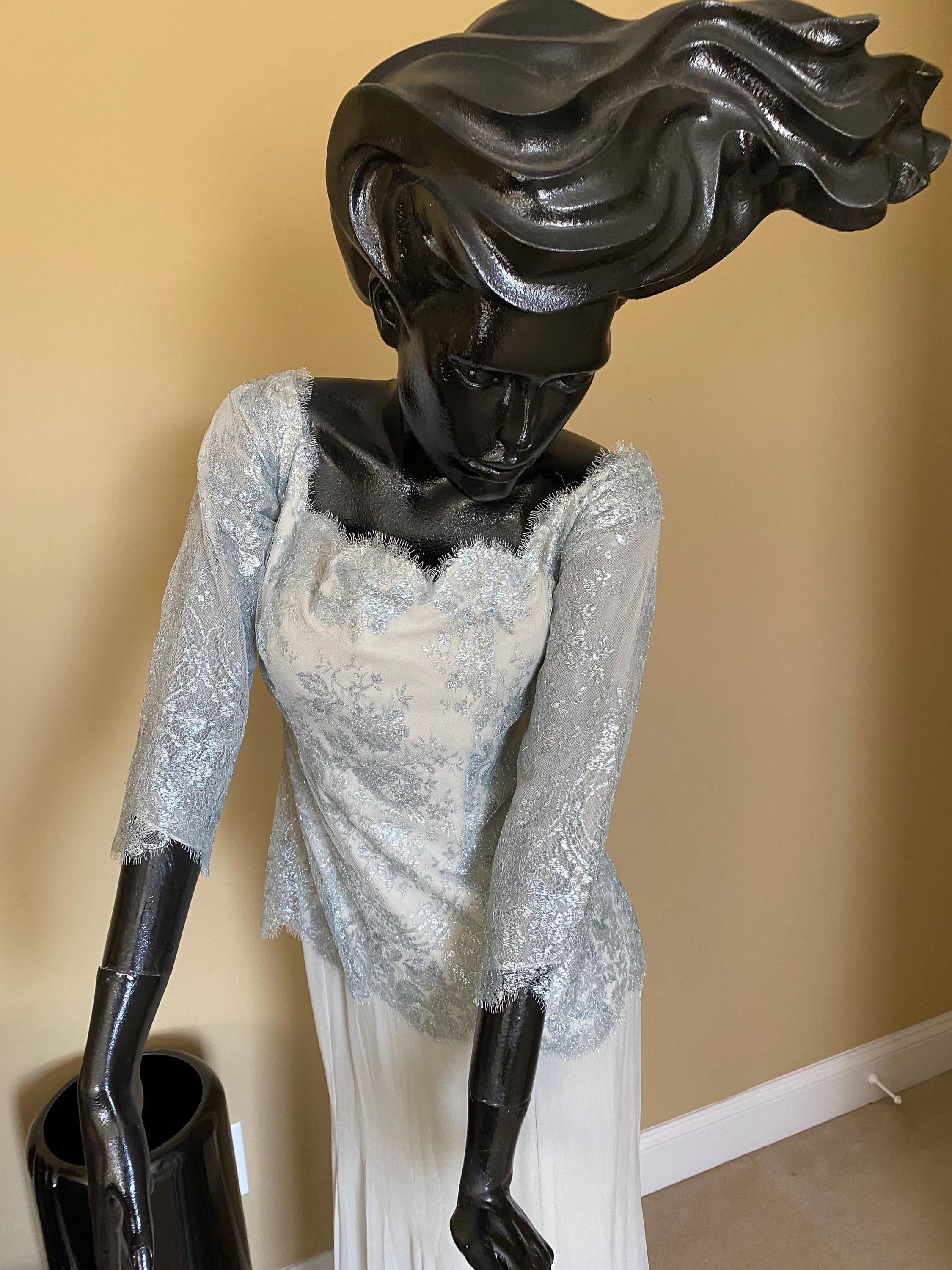 Designer Sansappele lace and chiffon long gown